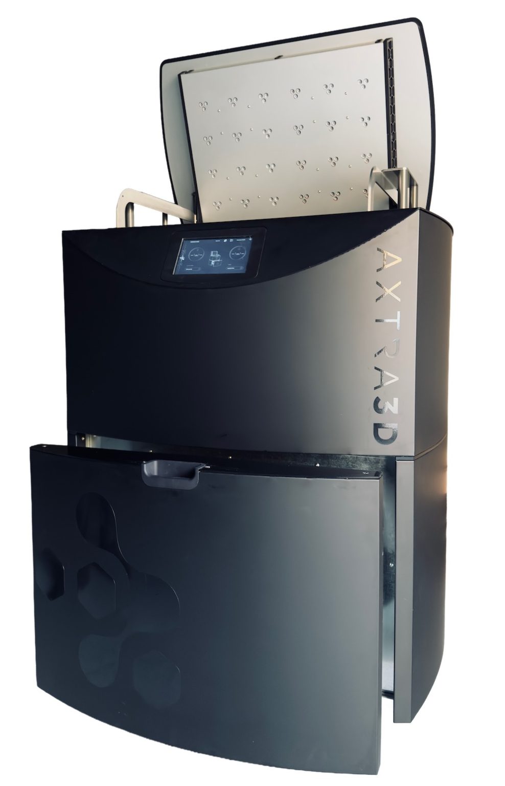 Axtra.Wash is the company’s new automated wash station. It uses dual-stage cleaning, optimized agitation, and a closed-loop solvent system so users can clean parts without wasting IPA or dealing with messy drying steps.