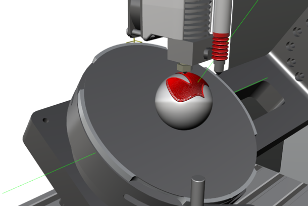 Simulation of the surface filling strategy on a round surface. Image courtesy of Advanced Printed Electronic Solutions.