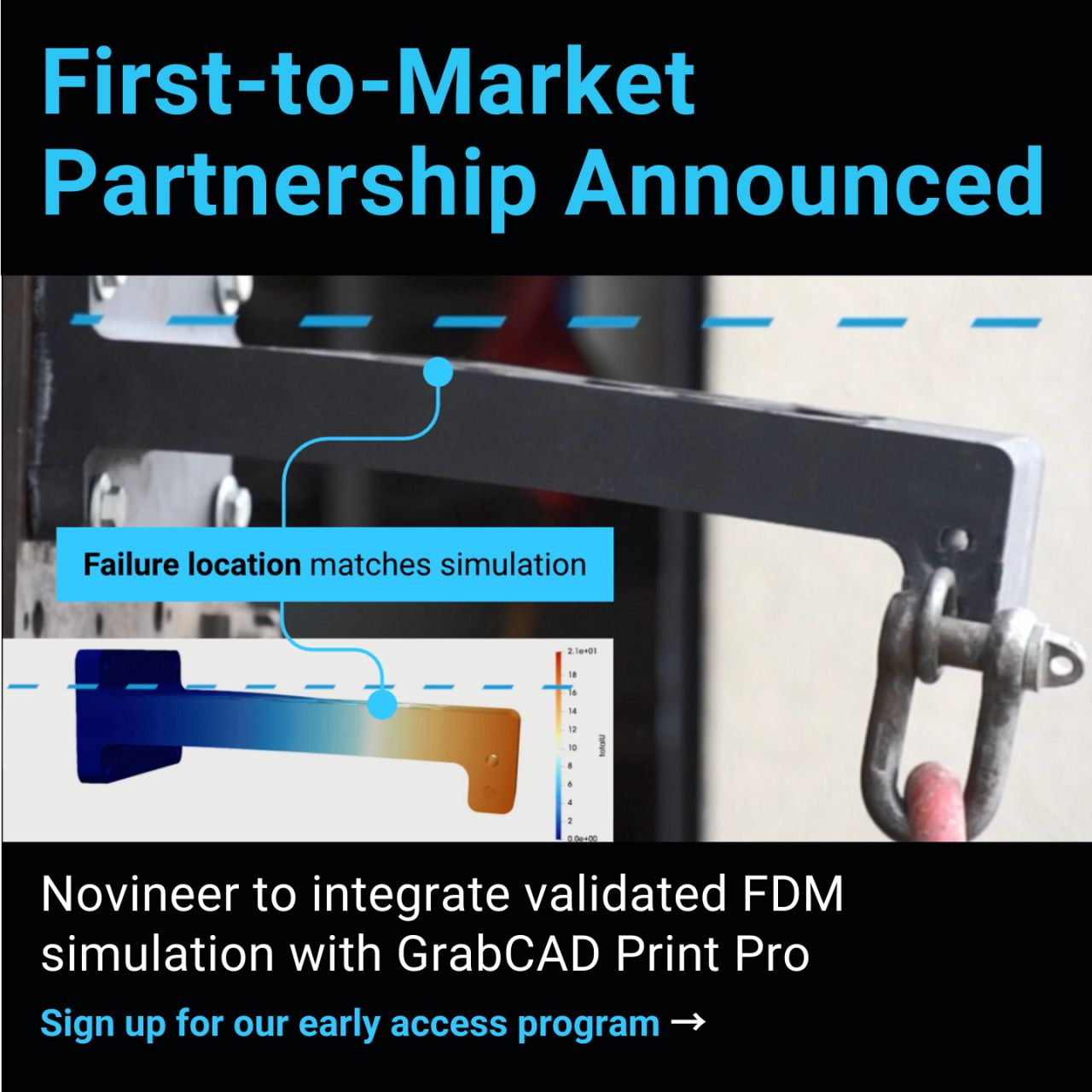 “If you change the tool-path, the properties, the performance, the strength and stiffness and parts are all going to change, which can lead to part failure. General purpose simulation software ignores all of that, so industrial FDM users are currently stuck in an expensive and time-consuming product development cycle where they can only find out that their parts are failing after real-world testing, and even then, it takes further trial and error to find out exactly why the parts are failing. With NoviPath and GrabCAD Pro, you just have to enter the loads that the part being designed will need to be able to withstand, and press simulation.”